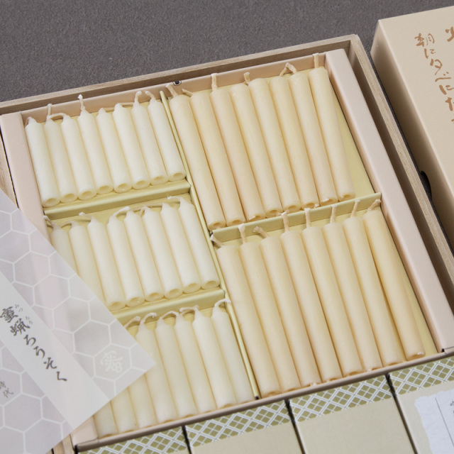お線香の元祖「仙年香」を進物用に特別調合した「吟撰仙年香」と希少な蜜蝋をふんだんに配合した「蜜蝋入りローソク」のセット。ローソクは使いやすい30分と15分の燃焼時間。ローソクのリーディングカンパニーが自信をもっておすすめする、ローソク×線香のご進物です。