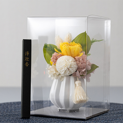 お仏壇や大切なお写真と一緒に飾ってもらえるプリザーブドフラワーとお線香一束のセット
